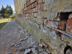 Az utólagos vízszigetelés acéllemezek beütésével történt, amelyek a kapillárisan felszívódó nedvesség útját zárják le a fal teljes keresztmetszetében. A munkálatokat gyorsan, hibamentesen tudtuk elvégezni, így az épület készen áll a belső átalakítások megkezdésére is.