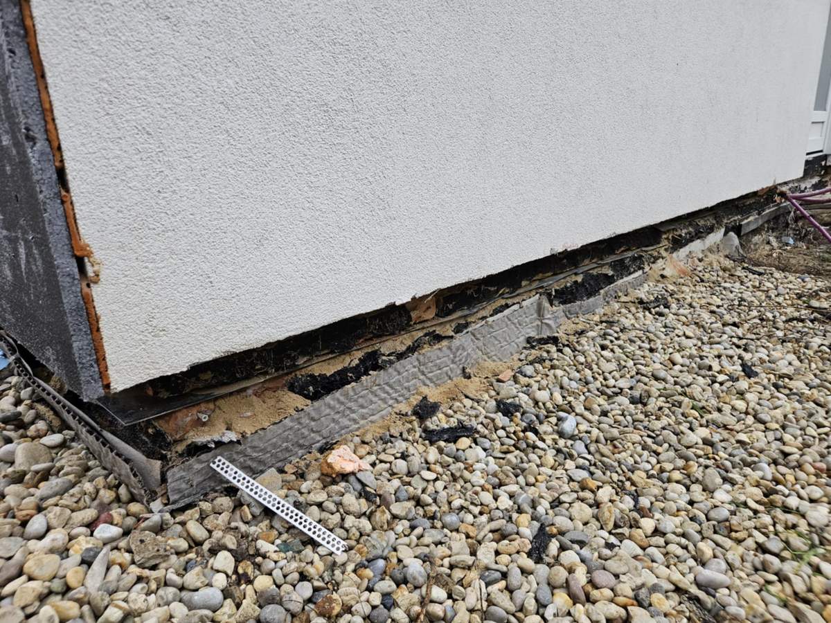 A munkálatokhoz csapatunknak munkaárkot is kellett ásnia, mivel a hátsó homlokzatnál a terepszint kedvezőtlen magassága miatt csak így tudtuk biztosítani a megfelelő hozzáférést és a tartós megoldást.