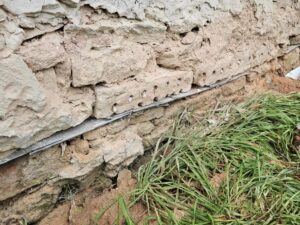 A keszthelyi polgári háznál, az épület mögött a külső talajszint nemcsak hogy azonos volt a belső padlószinttel, hanem annál magasabban helyezkedett el. Ilyen esetben a talajnedvesség közvetlen nyomást gyakorol a falazatra. Ha a lábazat nem tud szellőzni, a nedvesség a lakótér irányába halad.