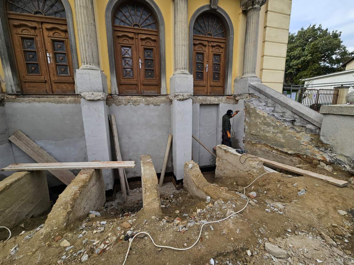 A művelődési házhoz tartozó alagsori helyiségek vízszigetelésére már a lépcső és a külső szerkezetek bontása során is figyelni kellett, mivel az alagsor falszerkezete több irányból is ki volt téve nedvességnek: