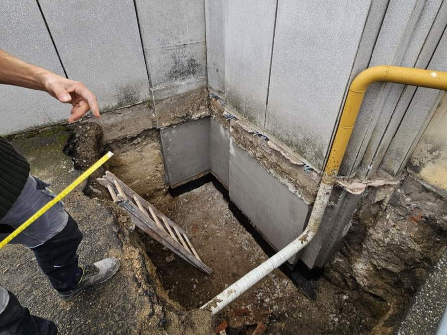 A szigetelési munkák egy kialakított munkaárokban zajlottak, amely lehetővé tette a falak teljes feltárását, és a megfelelő munkamagasságot. Ez biztosította, hogy a kenhető és injektálható anyagok a megfelelő mélységbe és vastagságba kerüljenek, tartós és biztonságos vízzárást létrehozva.